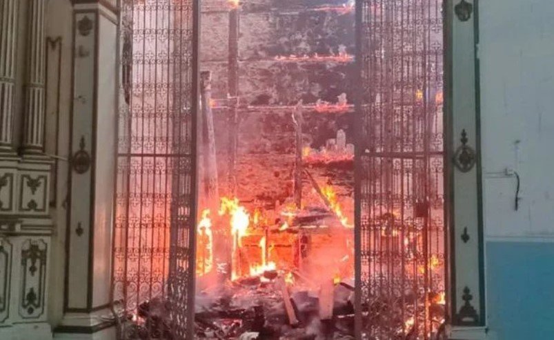 Incêndio atinge igreja em Valença. Crédito: Reprodução
