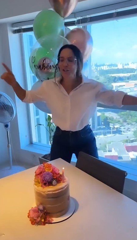 Ivete compartilhou um vídeo nas redes sociais em que mostra a surpresa, que teve direito a balões, bolo e um buquê de flores. Ao receber a surpresa, a famosa